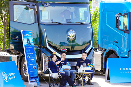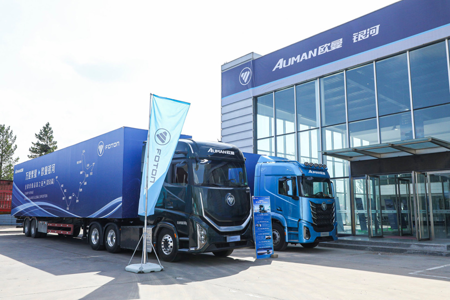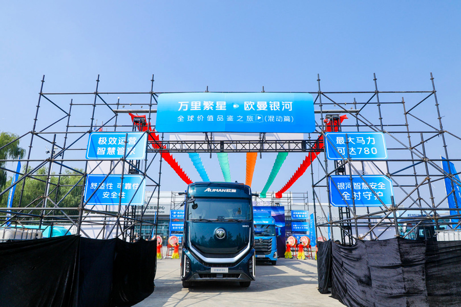 2025年9月9日上午,福田汽车万里繁星・欧曼银河全球价值品鉴之旅(混动篇)出征仪式在北京超级卡车体验中心举行。