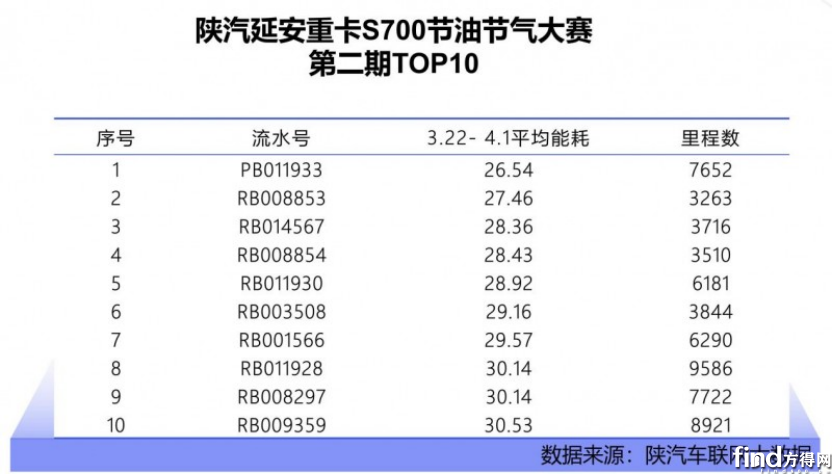 到了第三期比赛,竞争愈发激烈,据天行健智能车队管理系统的能耗数据显示,排名前八的车辆,平均能耗均稳定控制在百公里26-29L之间,更有车辆跑出了百公里26.8L、27.83L等的好成绩。对于重型卡车而言,如此低的能耗水平实属难得,这不仅意味着车辆运营成本能够得到大幅降低,更以实实在在的数据,彰显了延安重卡S700在节油节气方面的显著优势。